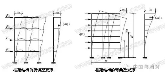 从施工开始到建筑物使用寿命期结束,建筑结构的变形始终影响着建筑的效果和使用功能。幕墙作为建筑的外皮,受主体结构的变化影响大,从而波及建筑幕墙的实用功能甚至是安全性。超高层建筑的结构变形主要有下几部分构成:框架核心筒的剪切和弯曲变形以及混凝土收缩变形等形式。主要有以下几部分构成: