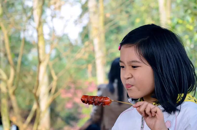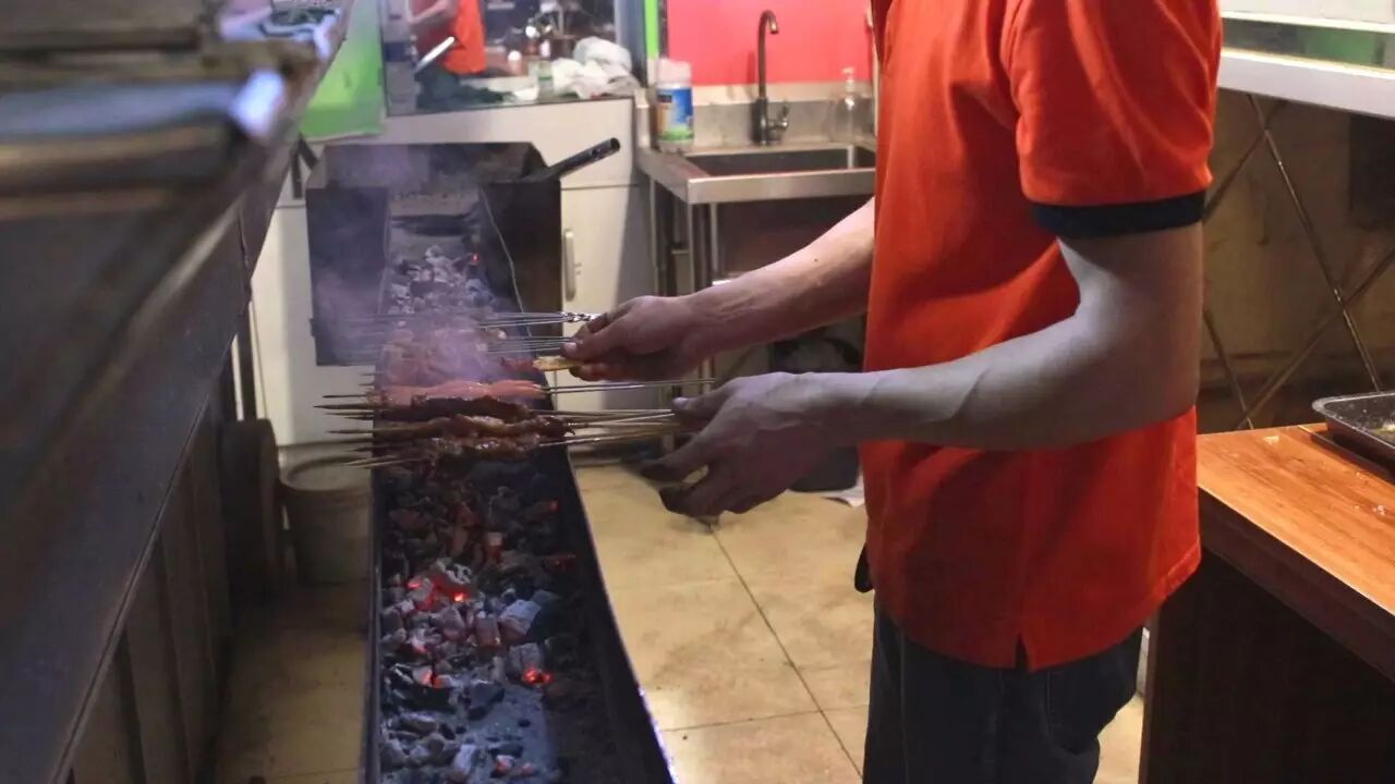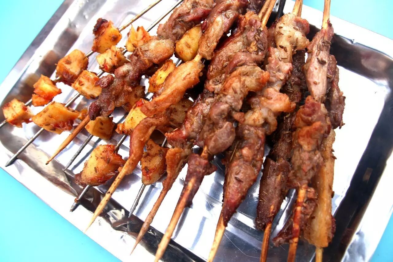 烤羊肉串:秦妈烧烤的肉是来自西蒙的纯正羊肉,吃起来不会过于膻,很有嚼劲。