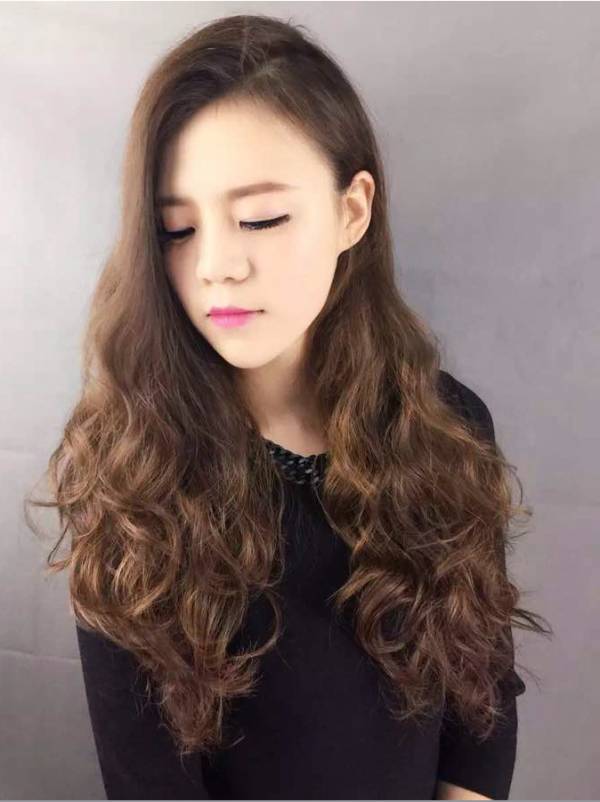 如果希望简单随意卷发可以有多种变化的话在发顶用小钢卡做出个蓬松造型,就会变得十分可爱。