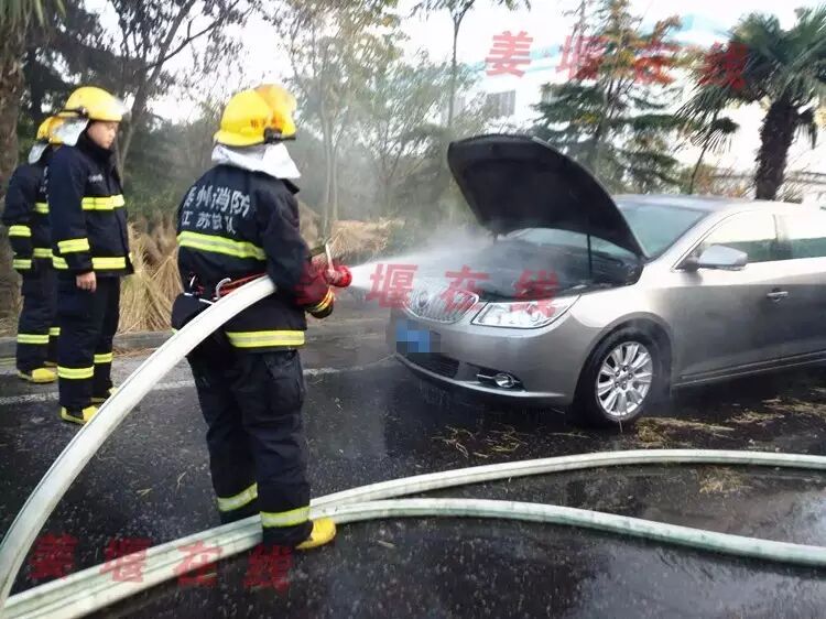 昨天早晨,一辆轿车行至姜堰娄庄洪林转盘西边路段时突然起火。