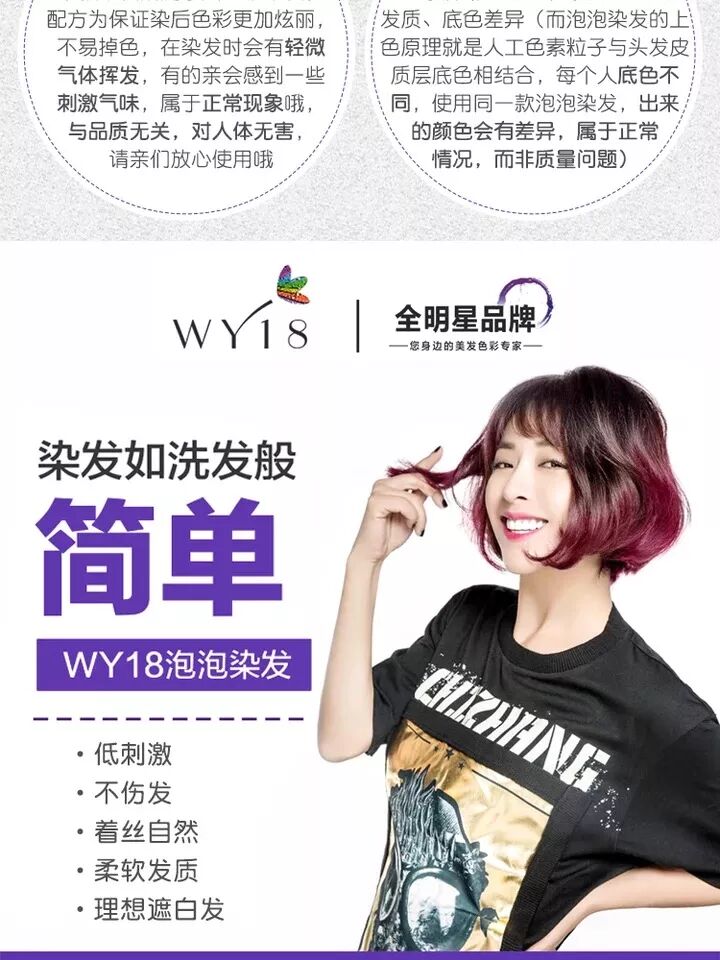 黄小蕾明星创立的品牌WY18泡泡染发膏