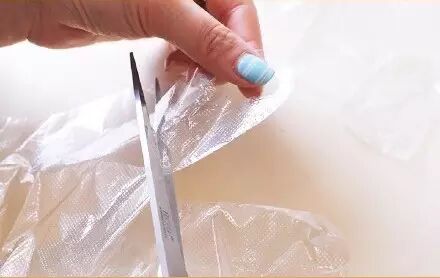 1、把一次性手套的五个手指头剪下来(不用剪太长哦~)。