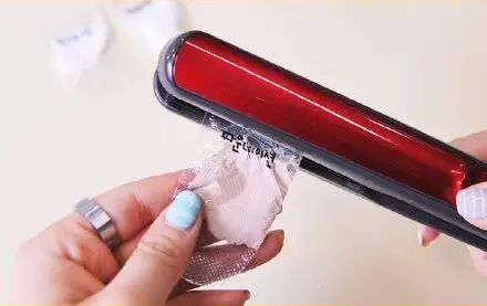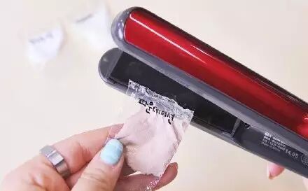 4、分装完毕后,就拿出我们平常用的直发夹板在开口处夹上1秒,就做好密封处理了。