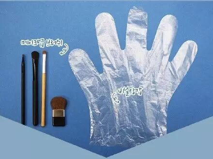 6、护肤品和化妆品都搞定了,那其他工具怎么办呢?还是拿出一个一次性手套吧。