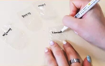 2、接着用笔在上面标记护肤品/化妆品的名称。