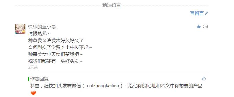 本周二留言点赞最多中奖者为《快乐的蓝小曼》