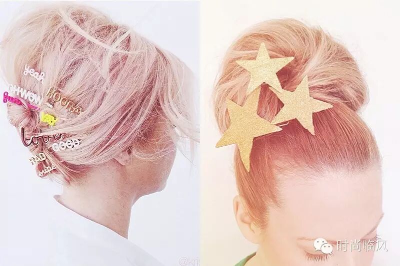 活泼俏皮,性格外向的姑娘尽可以用各种闪闪发光的金箔元素小发饰,Blingbling的金色星星发卡,或极具个性的字母发簪都能给你的造型带来极大的改变。