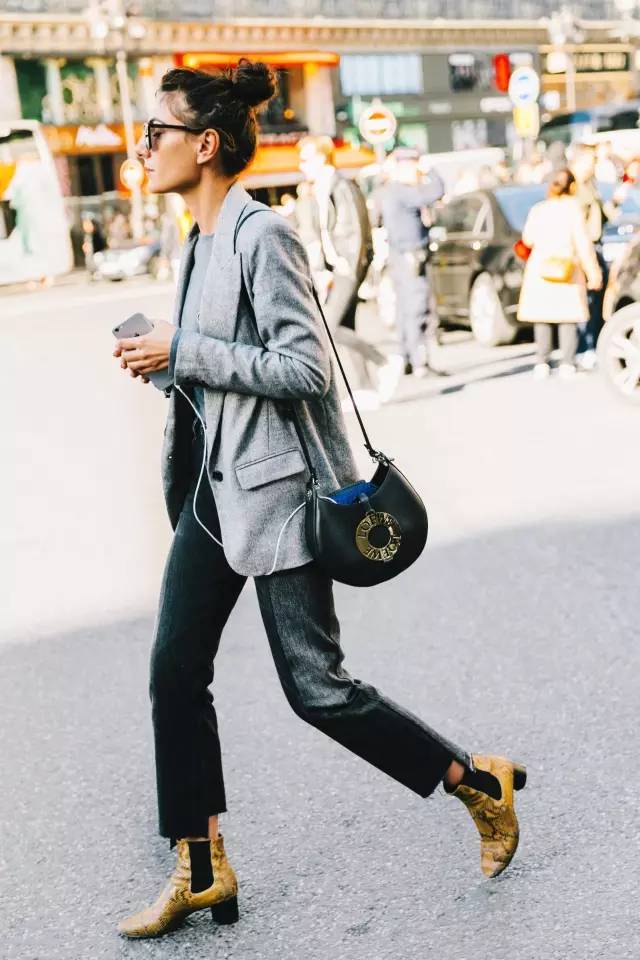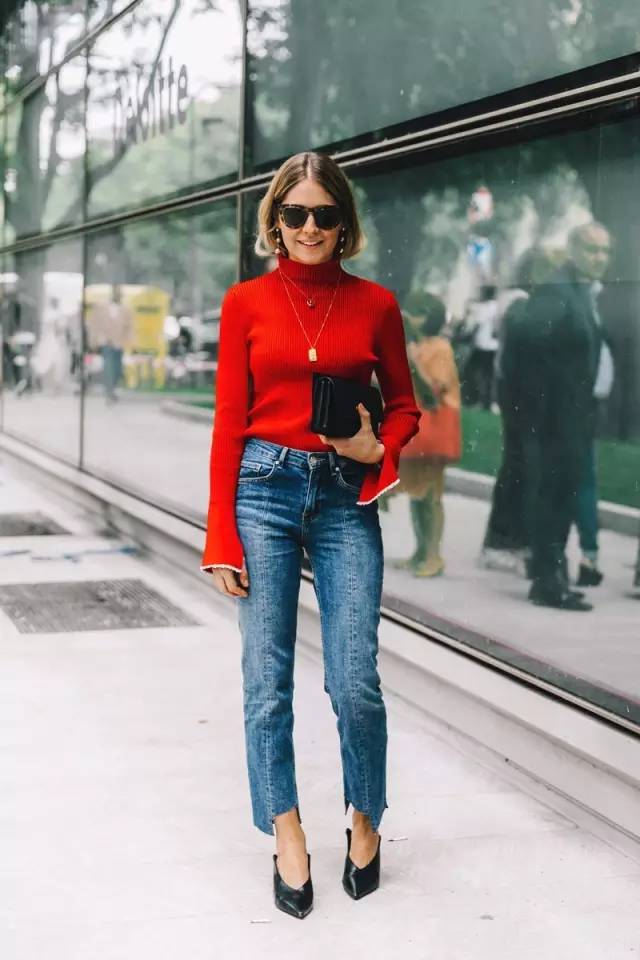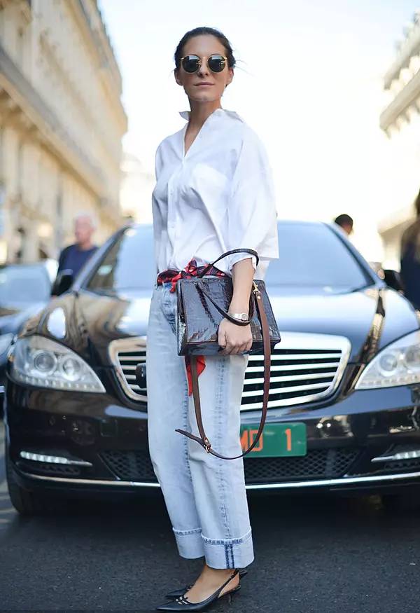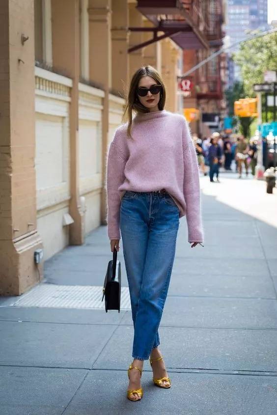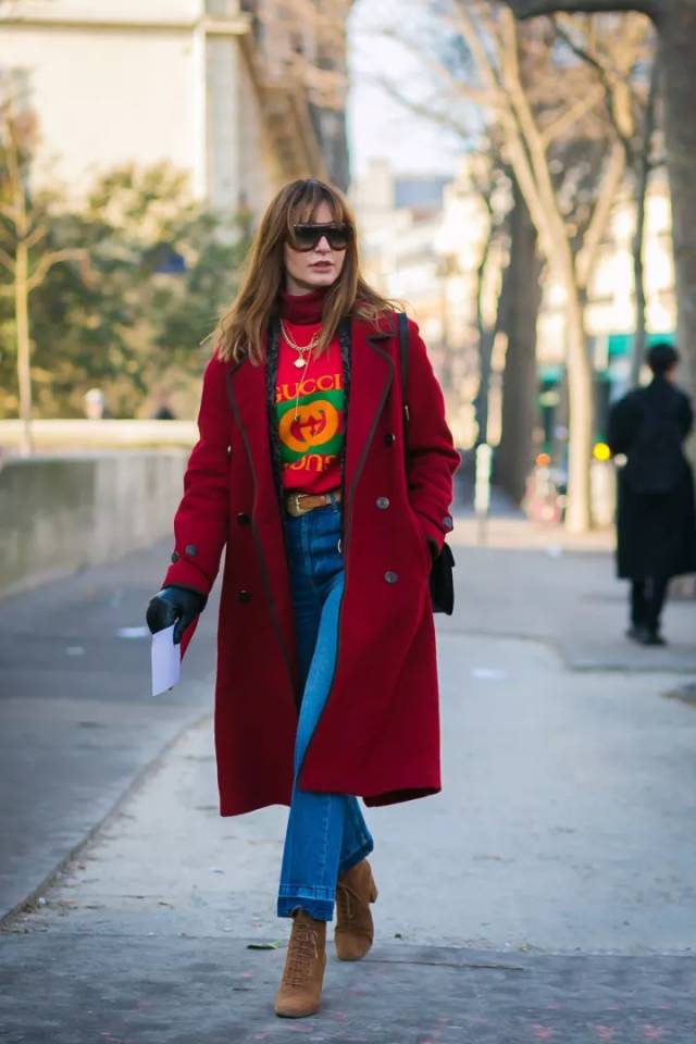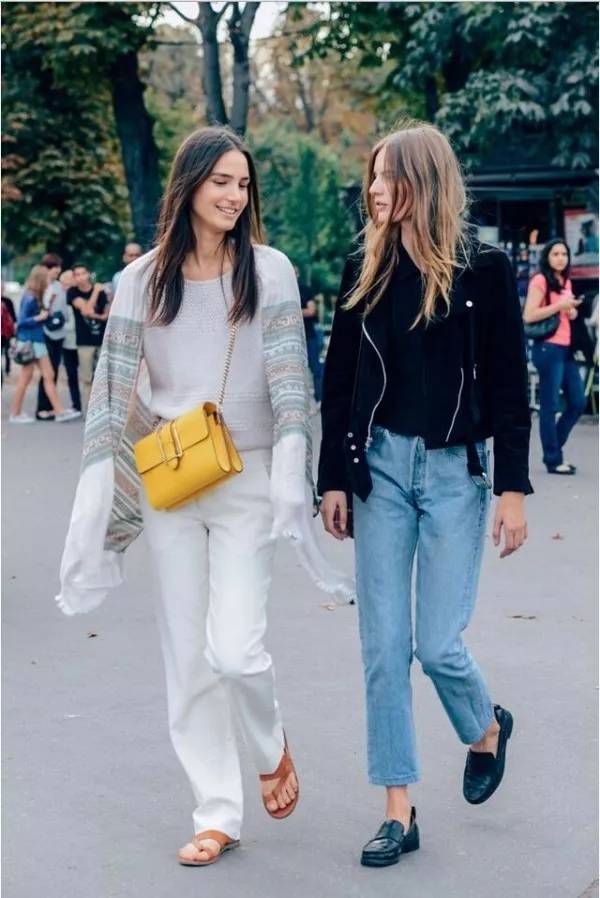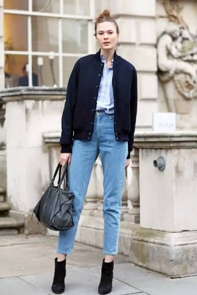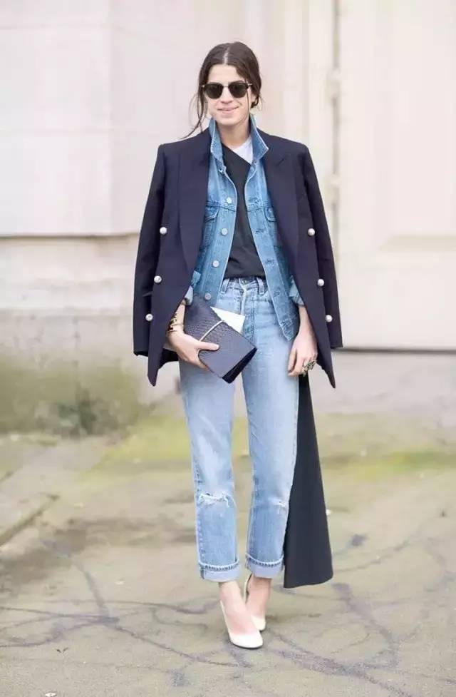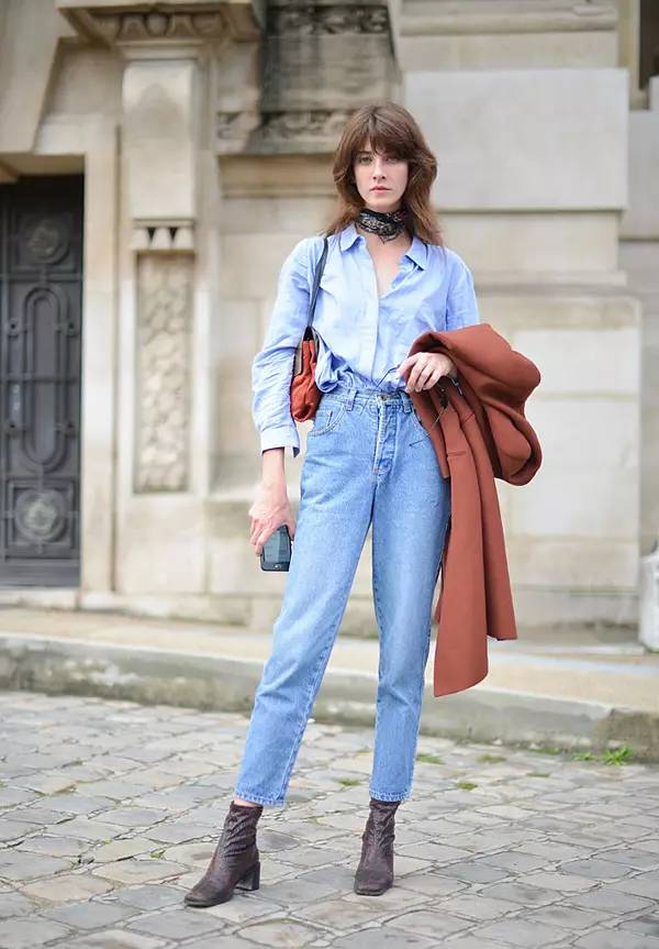 时髦和复古相结合的直筒牛仔裤,这种没有包紧腿部的裤子特别能呈现出一种时髦感,就是那种“你们拼命显摆腿部和臀部线条,但我随意”的云淡风轻感。