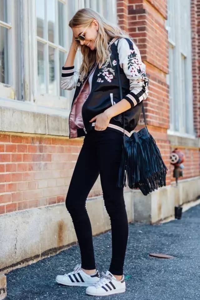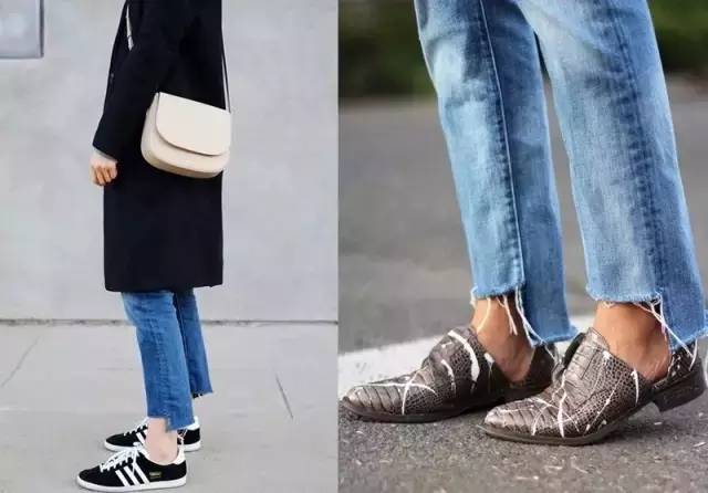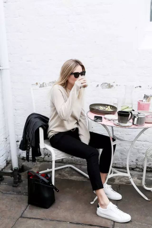 紧身牛仔裤和运动鞋的cp,帅气不羁又够时髦百搭,选择九分的紧身牛仔裤视觉上就有很显著的显瘦作用。