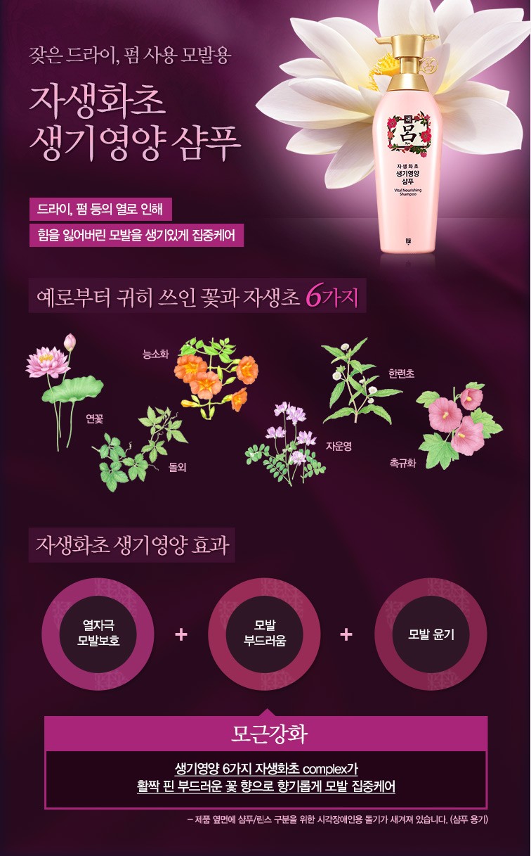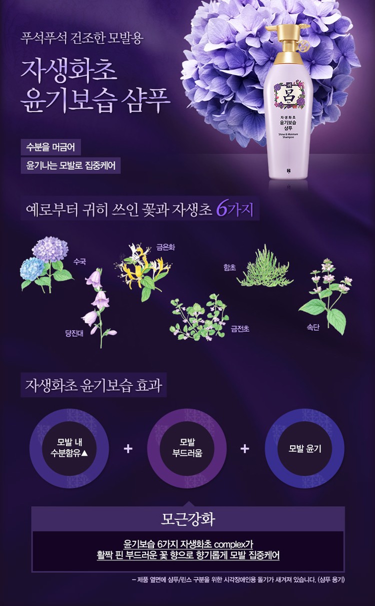 自生花草系列淡紫色吕: 特别适合细软发质和敏感头皮,有效减少因季节转换而产生的脱发,保湿滋润,防脱+固发