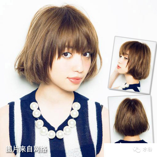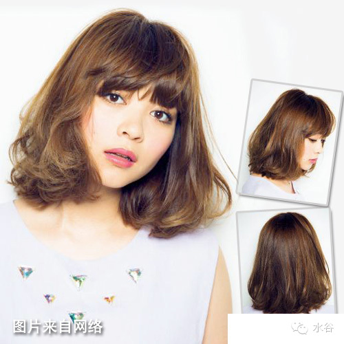 点评:及肩长度的梨花头,把刘海抓松一点,营造一种自然蓬松感,让人看得出刘海层次。