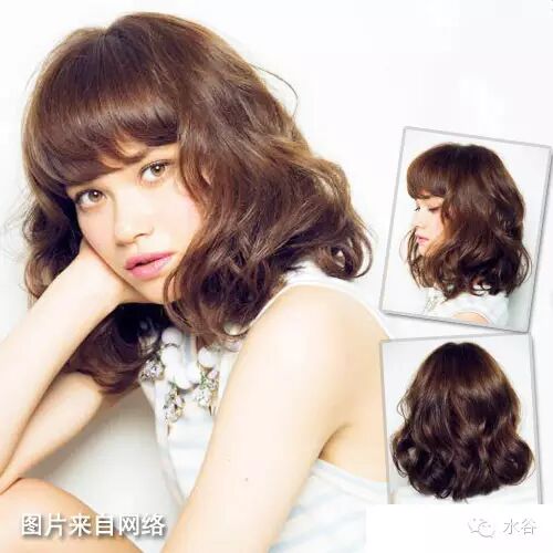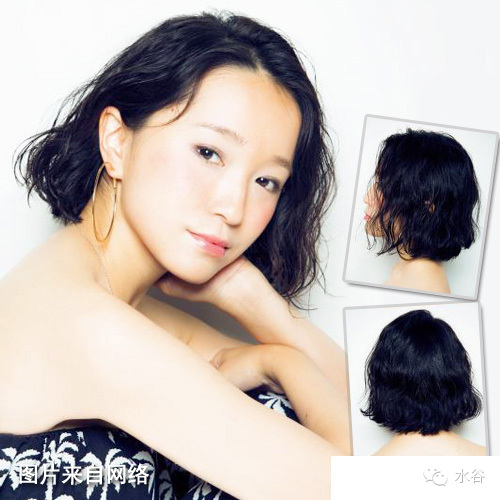 点评:不要因为黑色的头发很沉闷,其实只要选对发型,一样可以很有魅力的。不过黑色的及肩卷发要侧分刘海哦,中分会显得木讷的!