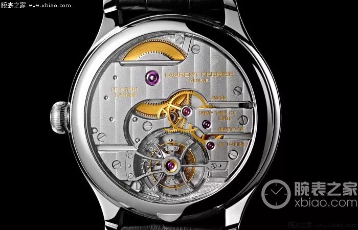 Laurent Ferrier陀飞轮腕表,醒目的罗纹连贯跨越桥板。