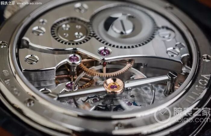 芬兰独立制表师Kari Voutilainen打造的精湛机芯。这枚机芯乍一看去朴实无华,实则方方面面都体现着非凡的工艺,单摆轮夹板的无瑕光泽就需要数个小时的耐心打磨。