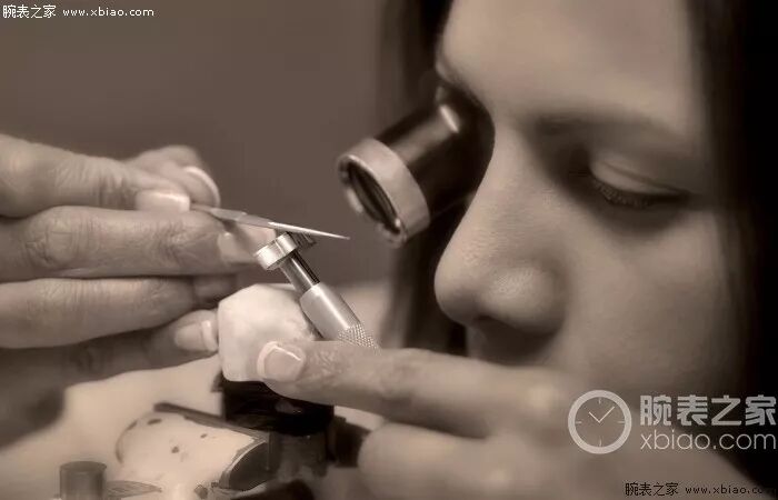 虽然现代数控机床也已用于生产和“粗润饰”时计零件,但手工精心润饰的机芯完全是另一回事,后者可被视作真正的艺术作品。一方面是程序化、大批量的工业润饰;另一方面是经过世代相传,由熟练工匠一点一滴、一笔一划为零件增添魅力,两者不可同日而语。有些操作,如特定角度(内角或尖角)的处理,只能通过手工完成。最后,手工润饰使每一件作品都变得独一无二,“不完美”反而成为最真实的馈赠。要知道,即便训练有素的制表工匠,也无法做出两件完全相同的作品。