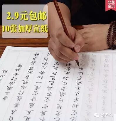 天猫报价2.7元包邮,10装,折算下来0.27元/张,白菜价,梅林翰光小楷字帖描红宣纸,加厚贡宣,新手适用 ,适合初学毛笔。