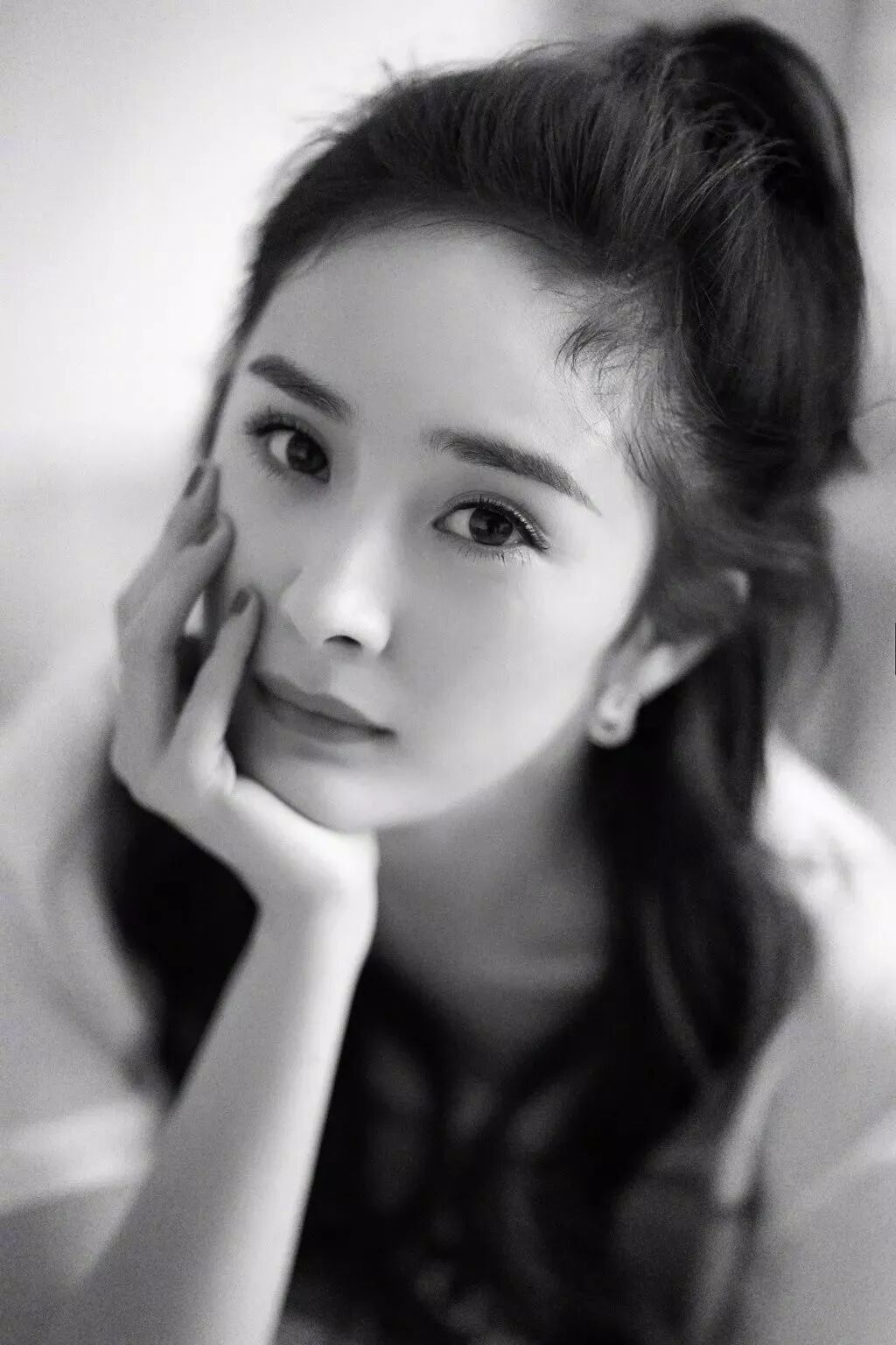 大波浪+高马尾的杨幂看起来非常俏丽,元气少女的feel。