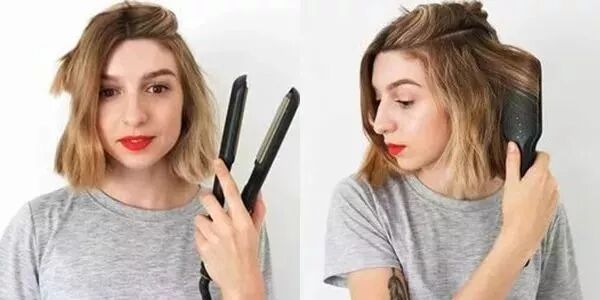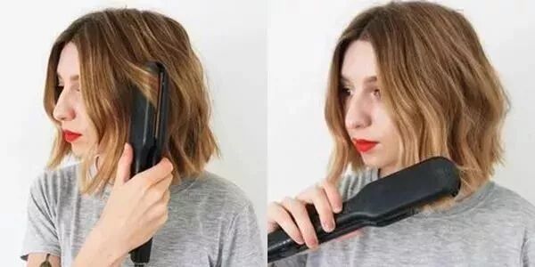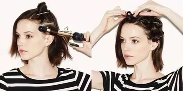 Step2:放下头顶的头发,并采用同样的方法卷发。夹一下发尾的位置,打造出外翻的感觉,让发型更加俏皮即可。