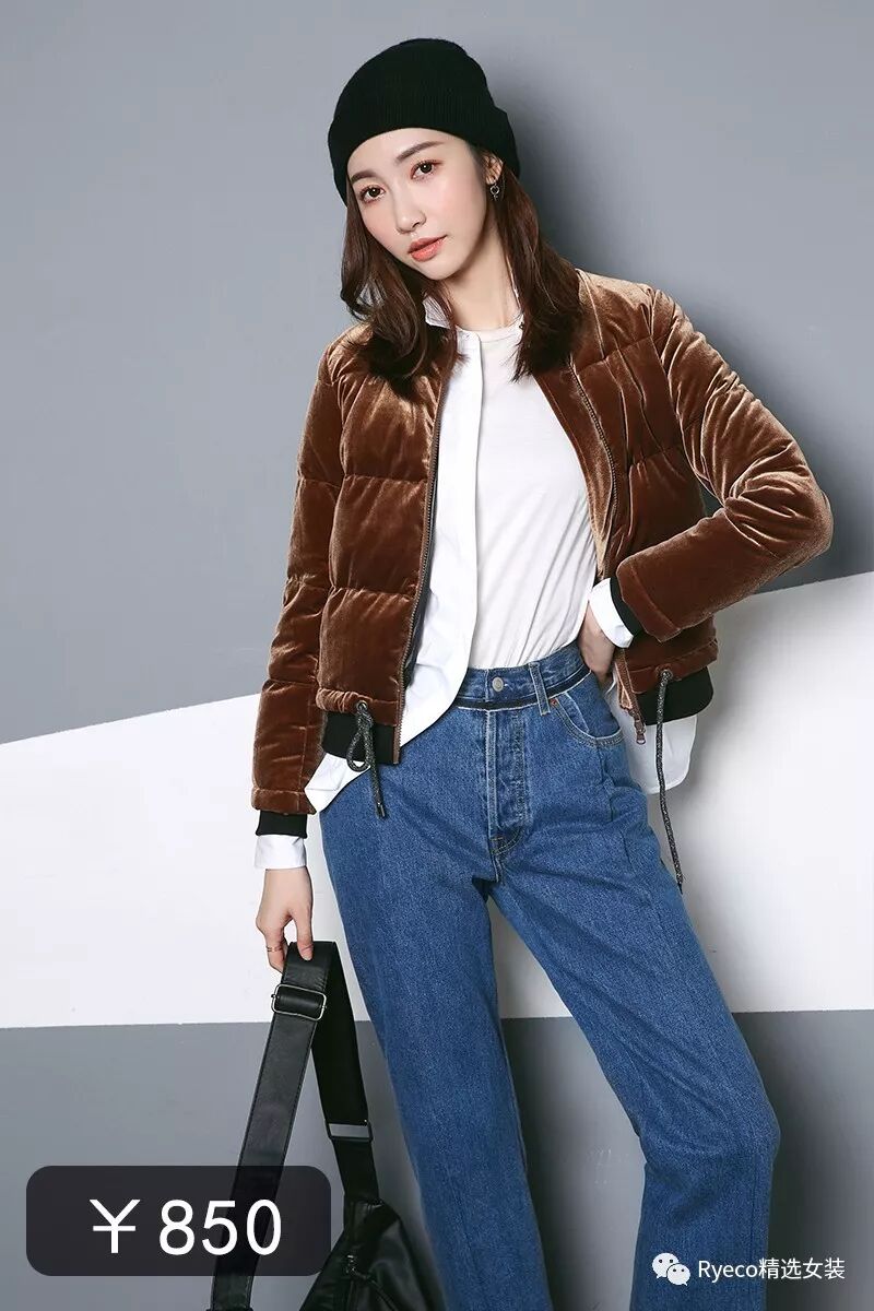 NO.5☞高奢也可以休闲感 意大利Ryeco焦糖咖啡金润泽丝绒面夹克式羽绒服