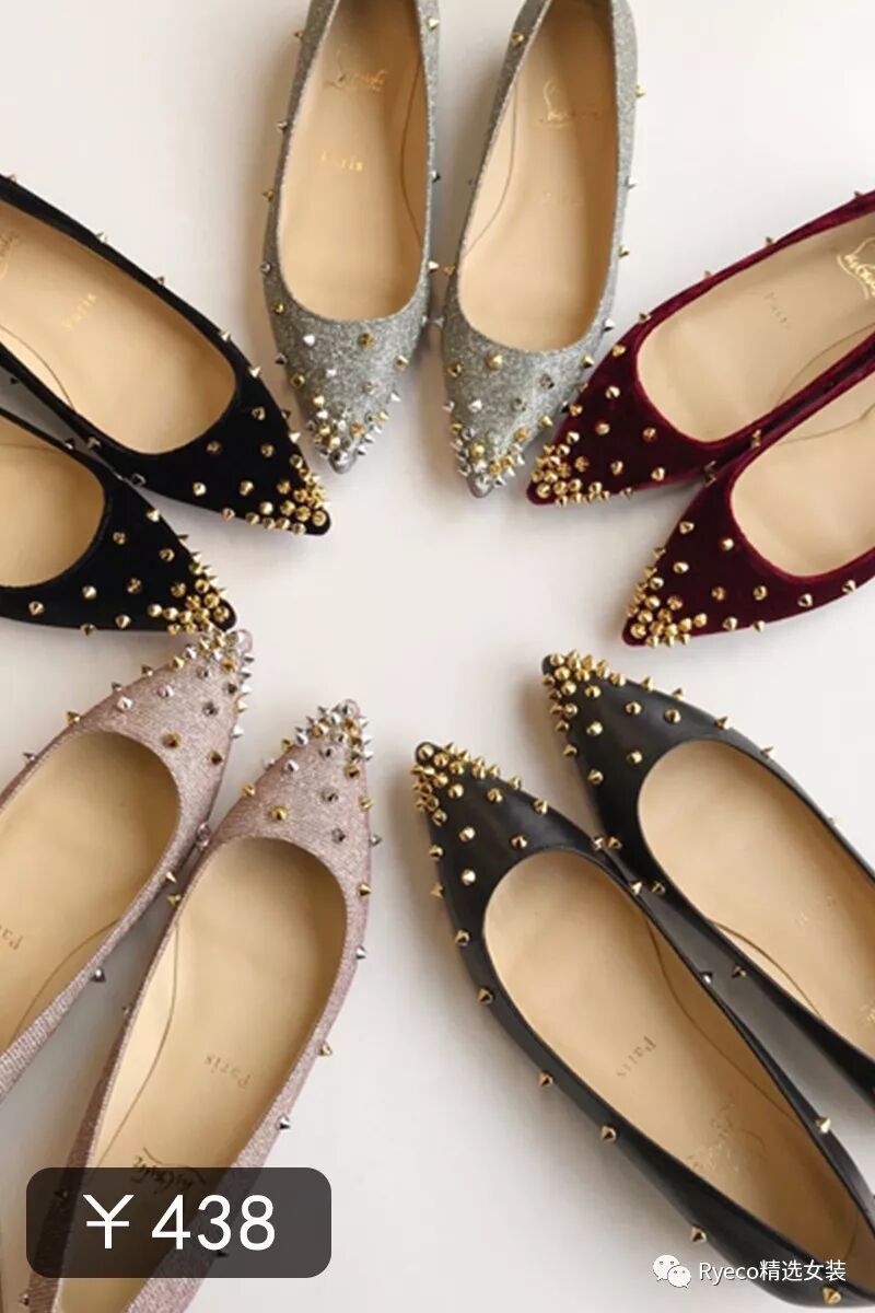 NO.1☞以舒适著称 Ryeco2018春夏红底铆钉平底尖头鞋 五色选