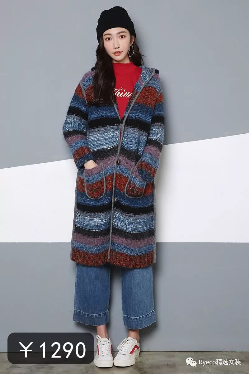 NO.11☞2018早春 RR推荐西子自留 Ryeco厚实保暖粗棒针织侧开叉彩虹毛衣
