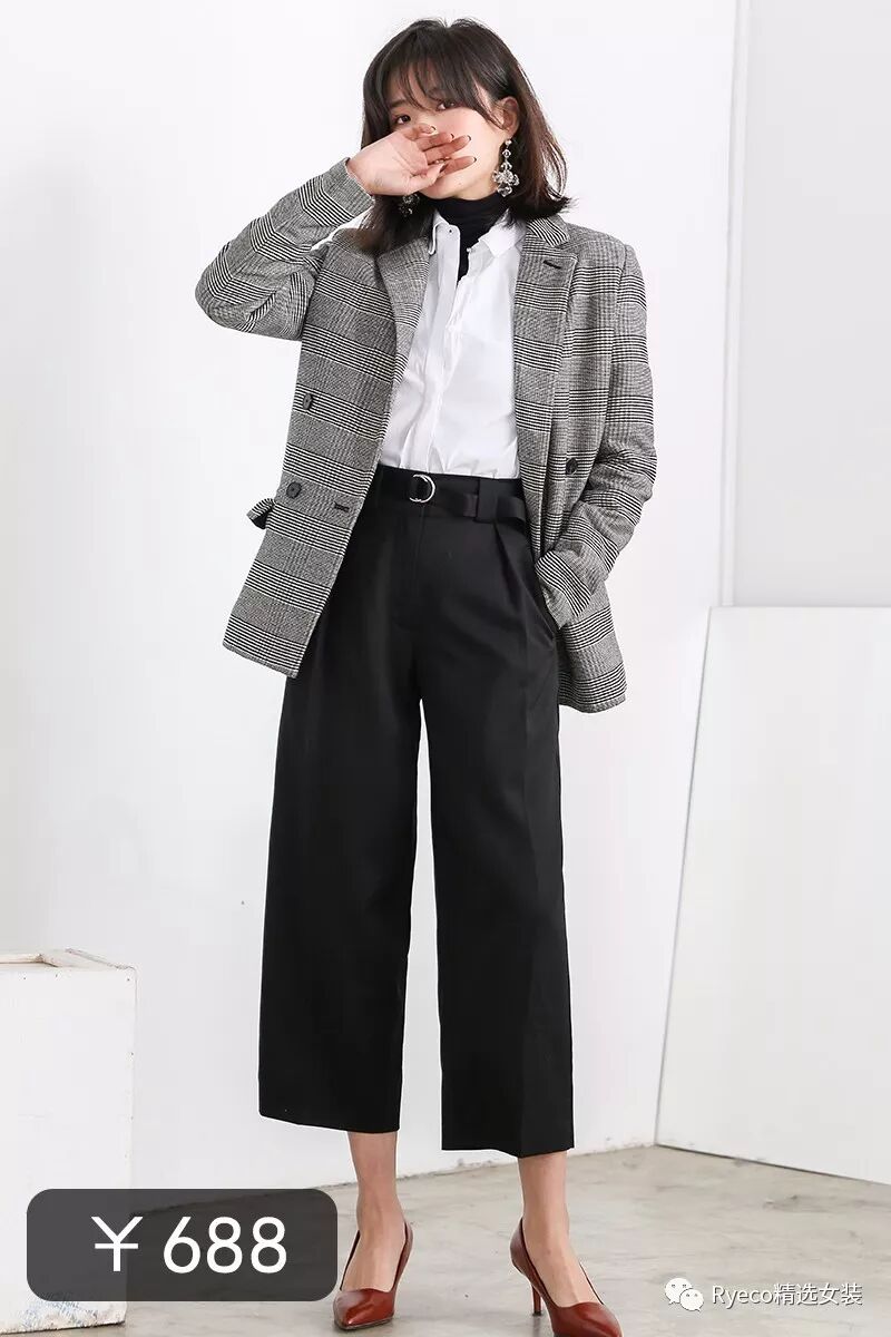 NO.3☞精湛裁剪 雕 英朗线条Ryeco优雅干练千鸟格厚实羊毛呢九分阔腿裤