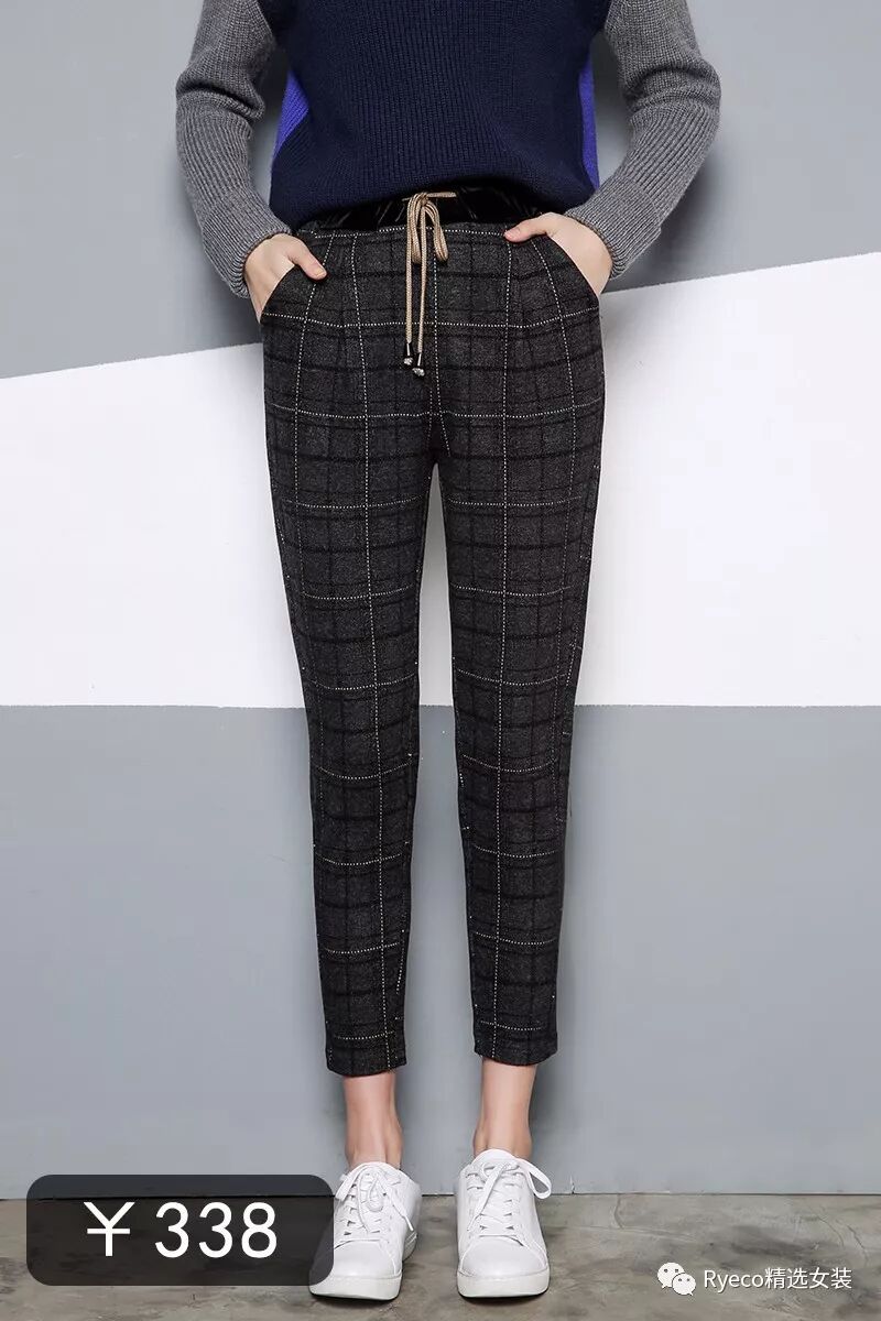 NO.13☞流金岁月 英伦复古格纹Ryeco松紧系带腰身羊毛混纺锥型休闲裤