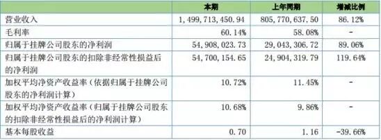 根据财报显示,2017年上半年,傲基电商营业收入约为14.99亿元,比上年同期8.05亿元增长86.12%。毛利率高达60.14%,而归属于挂牌公司股东的净利润高达5490.8万元,比上年同期2904.3万元增长89.06%。