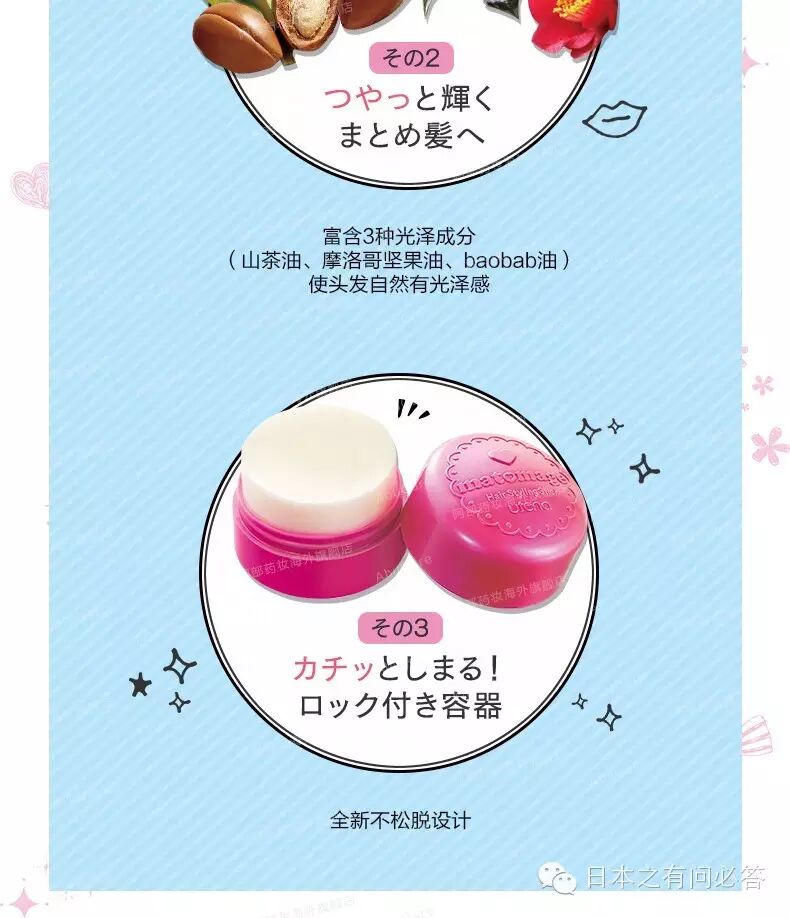 全新不松脱设计,珍珠光泽感可爱小物。哑光不油腻 ,有淡淡清香~定型、滋养、保湿一步到位,不沾手。持久一整天,柔顺服帖,轻轻一抹就跟浮毛、小短发说byebye