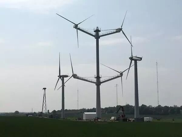 在前不久,丹麦风电巨头维塔斯联合多家欧洲科研机构研发的多轴风力发电概念机正式下线。工程方面在丹麦的一座风场用一台全地面大吊车将四座225kw,总计0.9MW发电能力的维塔斯概念风机全部吊装完毕。