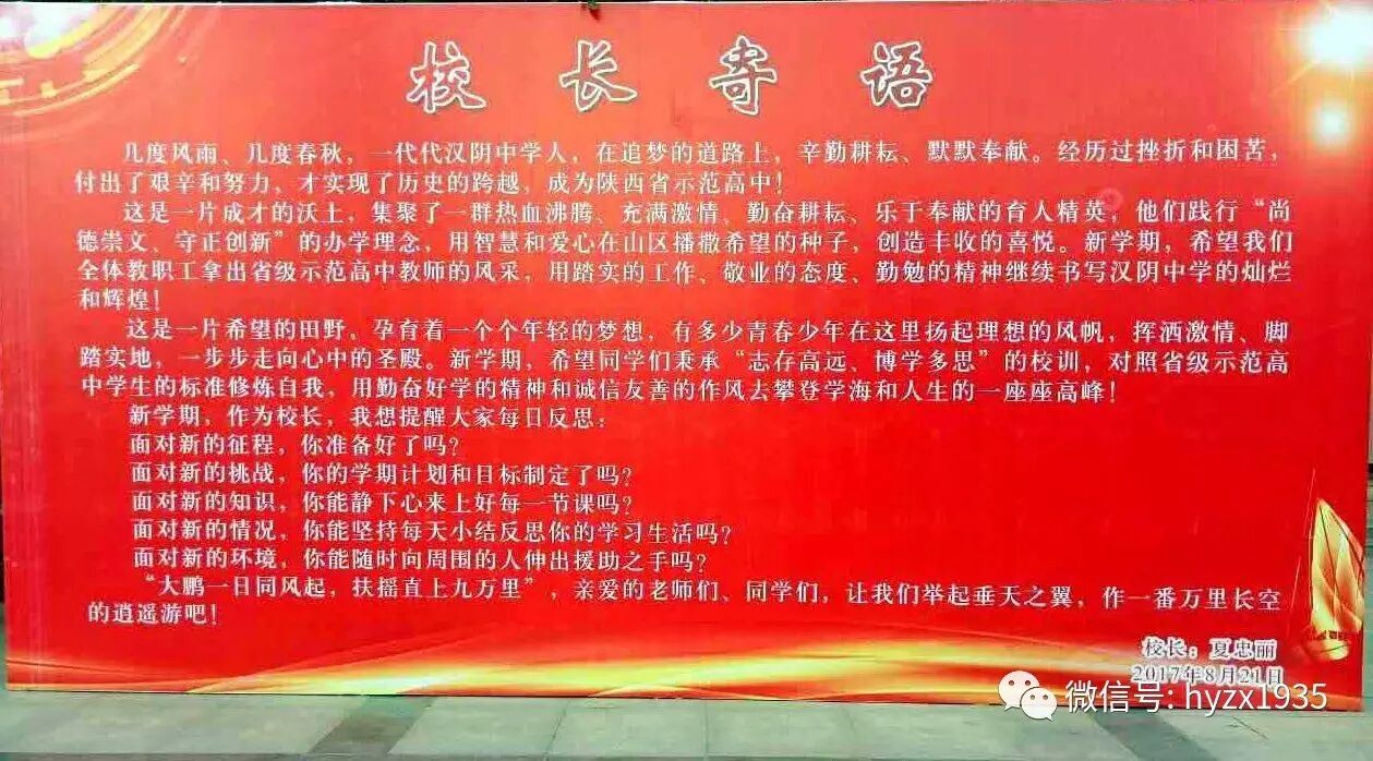 汉阴县人民政府教育督导室责任督学胡世宝(原汉阴中学校长)发言并寄语,希望全体教师牢记“责任”二字,继续发扬主人翁的精神,让我们汉阴中学的事业蒸蒸日上,繁花似锦。