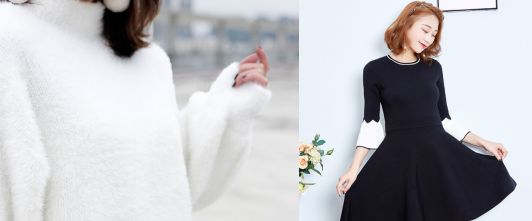 服装建议:白色毛衣、带有蕾丝元素的服装、娃娃领上衣、A字裙等。