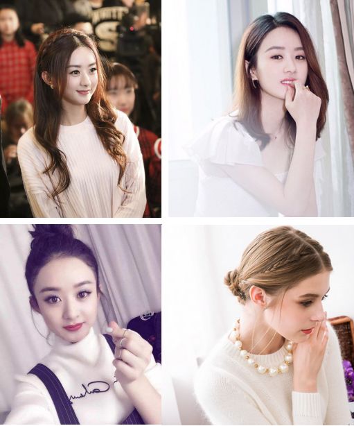 发型建议:丸子头、半丸子头、发尾微卷散下来、韩式花辫等。