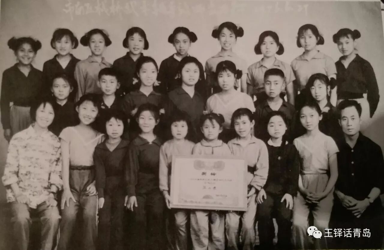 青岛市南区早期的武术班孩子们。前排左一为教练杜月英。