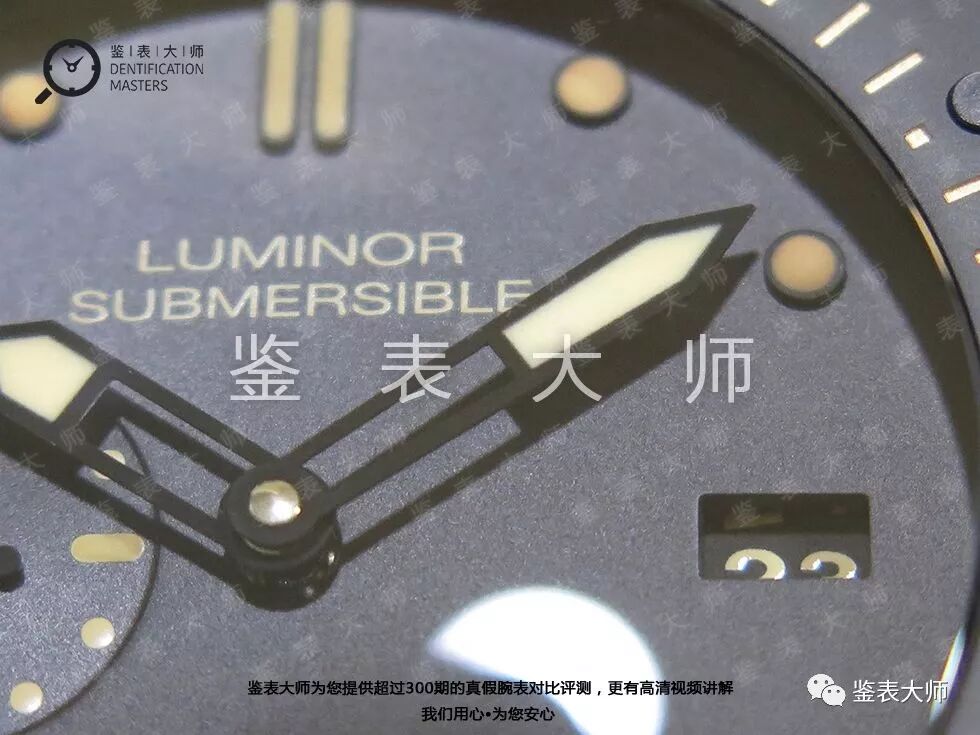 表盘LOGO字体清晰,12点位和6点位的立体时标夜光填充饱满,夜光明亮持久。
