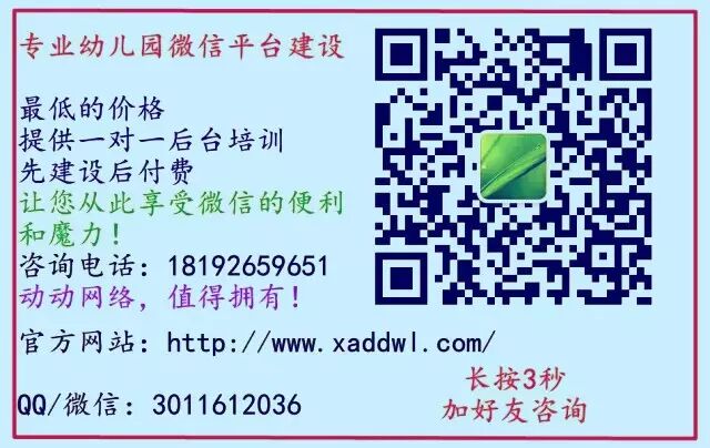 欢迎大家关注幼儿园资源分享公众平台,中文名称:幼儿园资源分享,微信号:xaddwlyey 关注后每天享受海量幼教资源。名师公开课,环创,舞蹈,手指操,活动方案,计划,总结,应有尽有。如果你是幼师或者是园长,请长按下面的二维码快速关注。