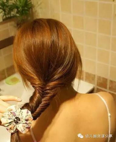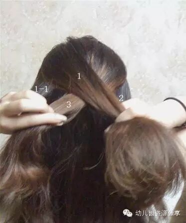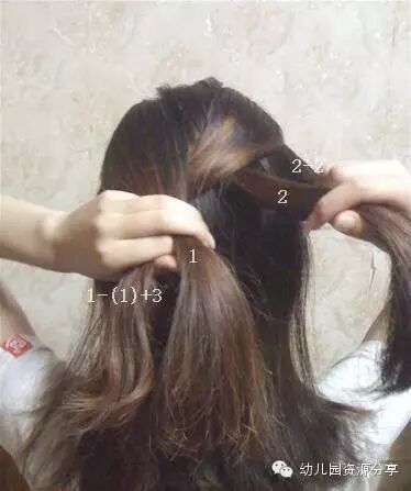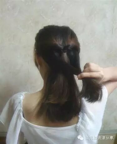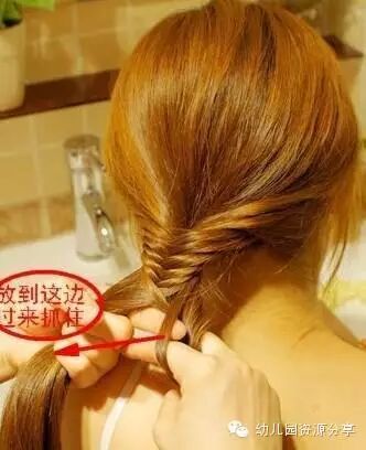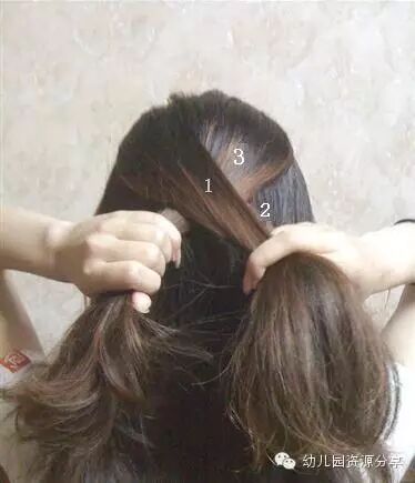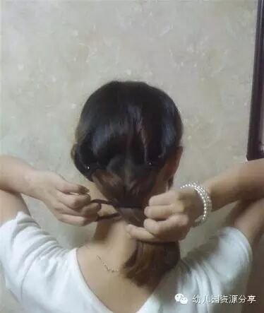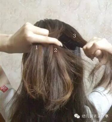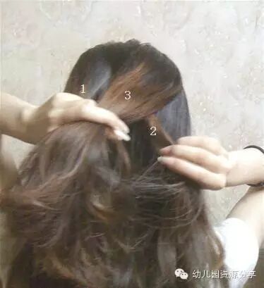 接着在半的头发取出一小点,放到另外一边去抓紧。