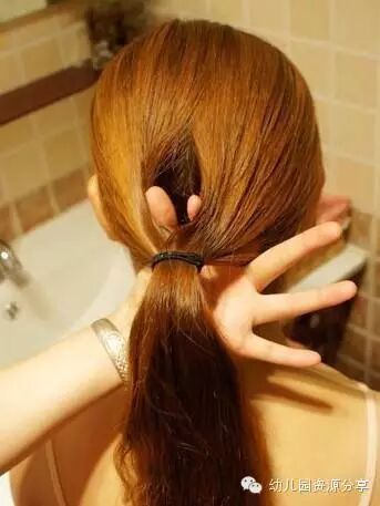 如图先将头发扎个马尾,用2个手指把马尾拉下来。