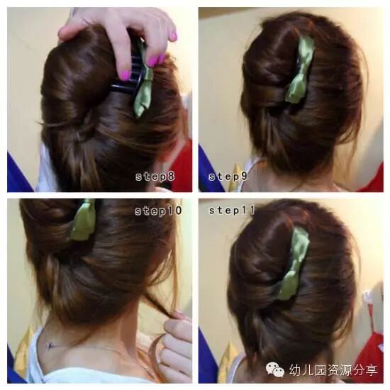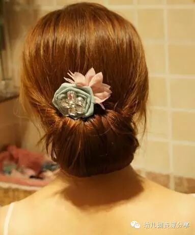 用卡子从头发里面把头发固定好,再套上一个可爱的发饰,这款凌乱丰盈的盘发就完成了。
