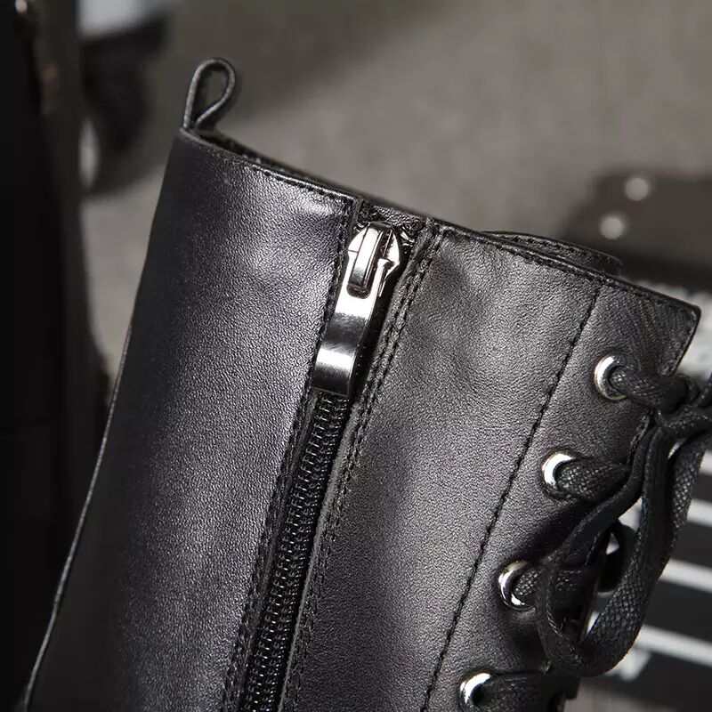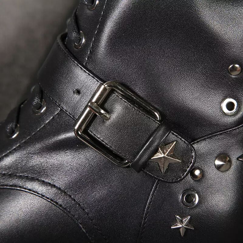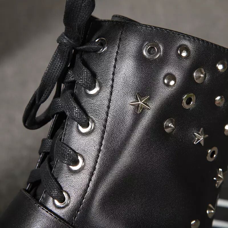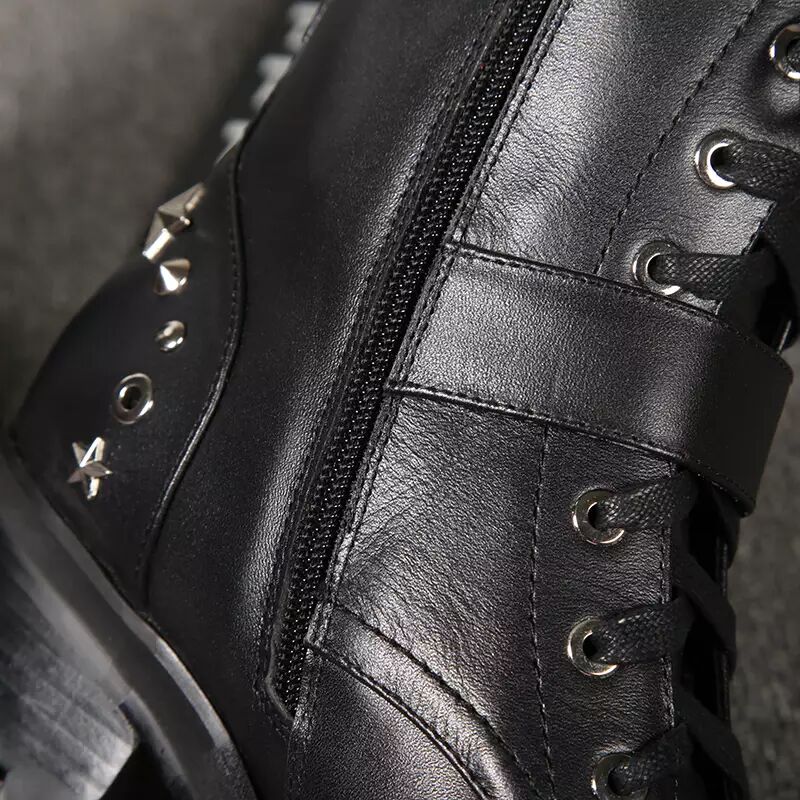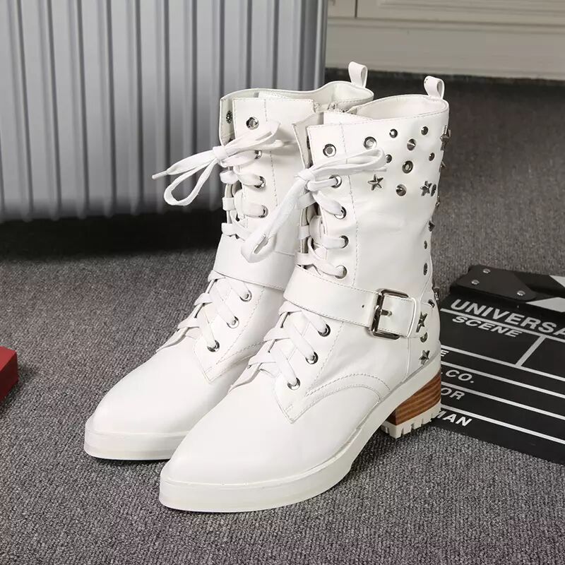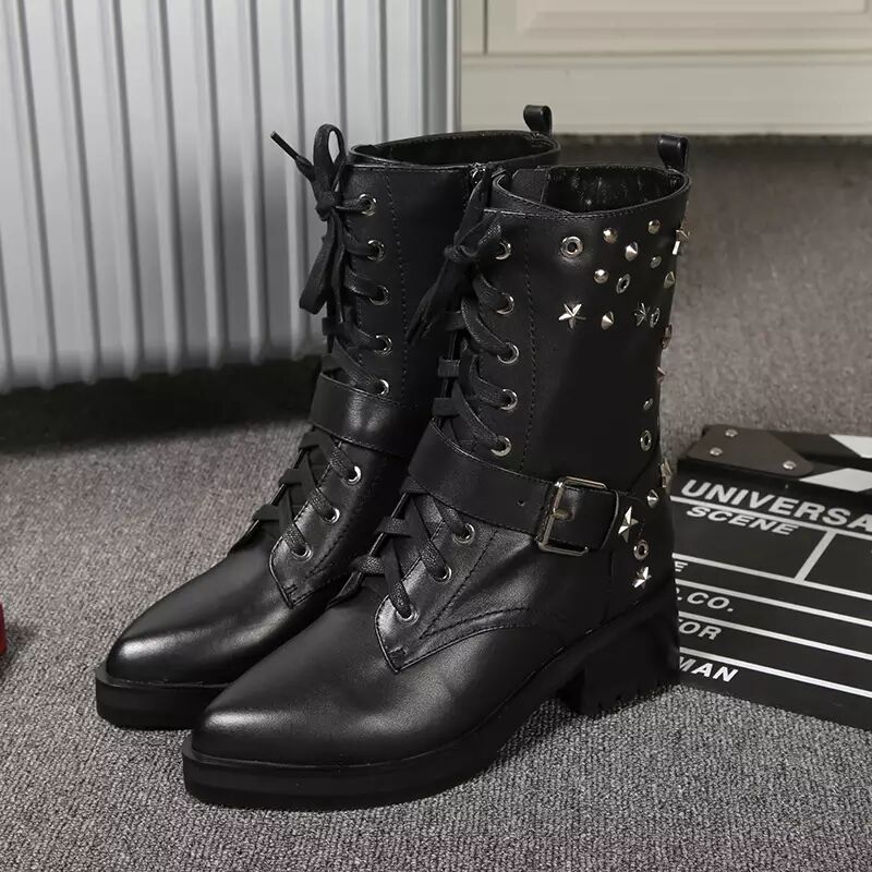 复制这条信息,打开手机淘宝即可看到【真皮女靴子 欧洲站16新款铆钉朋克风 平底方跟尖头中筒马丁机车靴】¥AAOuczDF¥