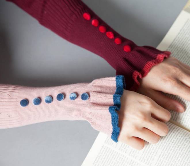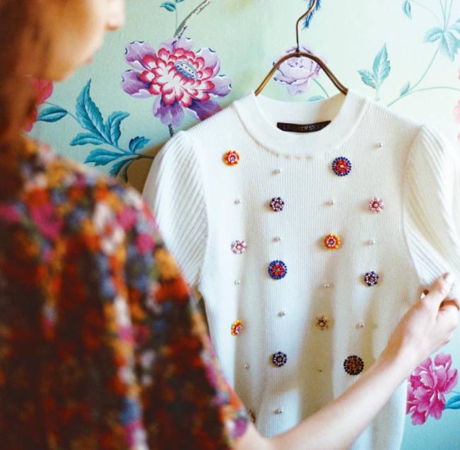 开头也说了,Lily brown会在基础款的基础上加上刚刚好的小设计,比如这个小喇叭袖加入纽扣装饰,还有这针织衫上一些特别的胸针。