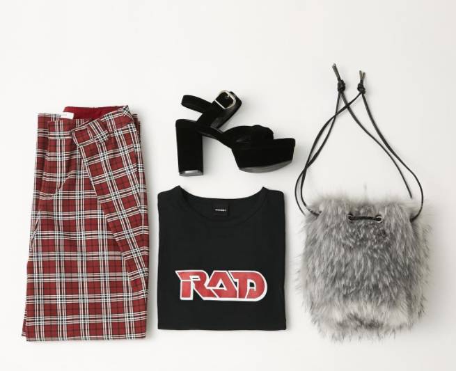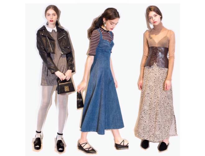 Snidel擅长混合各种元素来营造女孩甜美个性风格,自由搭配展现不一样的你,下面这几套搭配就能很好的诠释,你看,帅气的机车夹克和学院风连衣裙,还有那个性的腰封搭配碎花吊带。