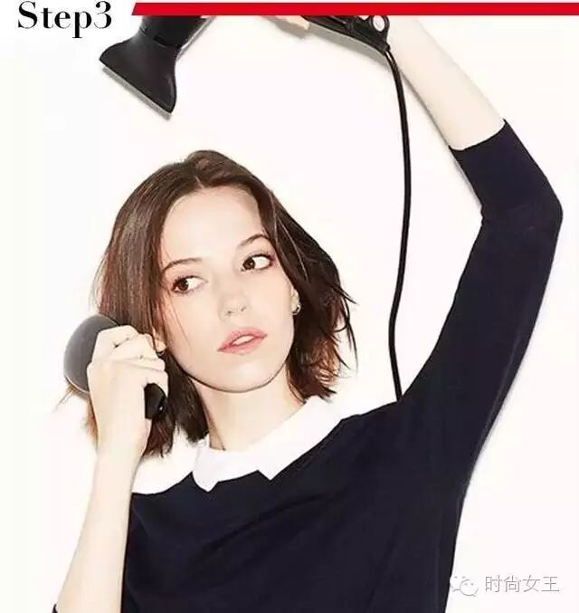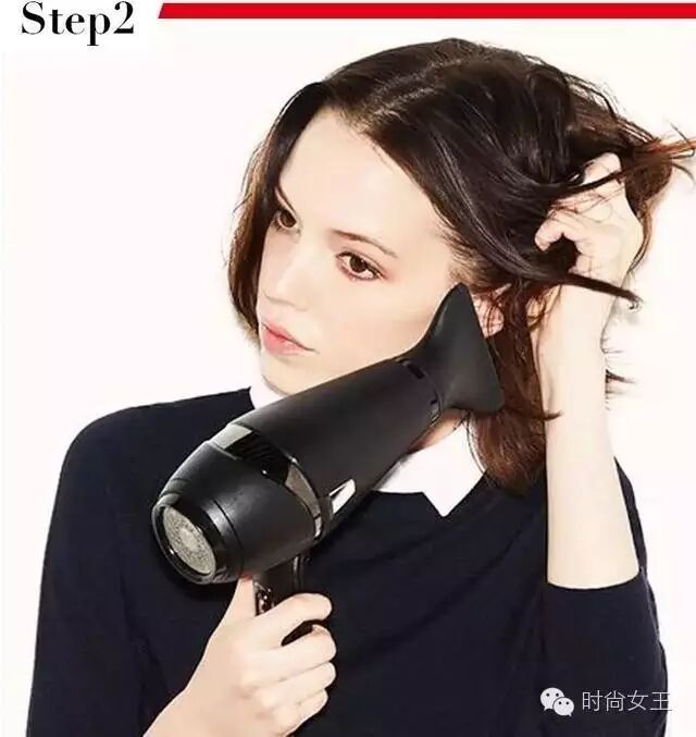 然后用吹风机把头发吹蓬松,用手随意攥一攥,吹的时候更快速哦。