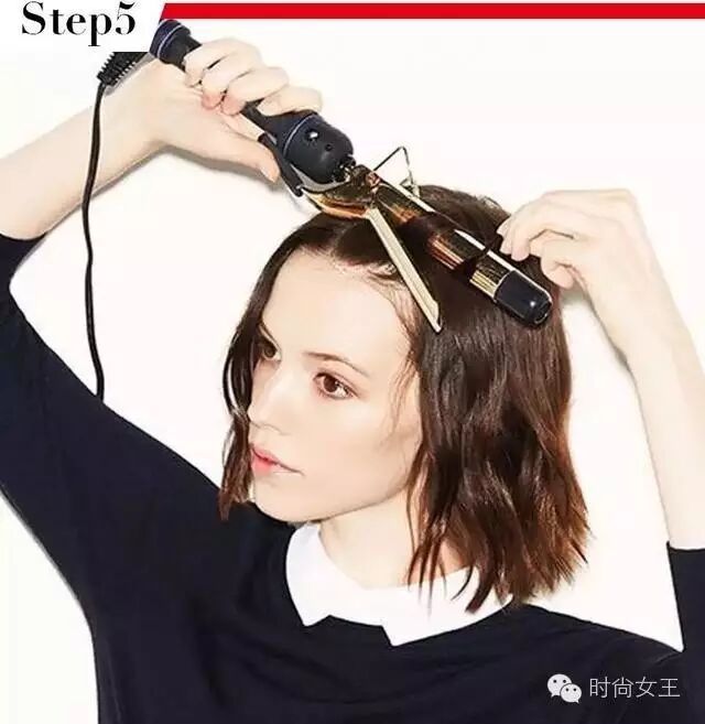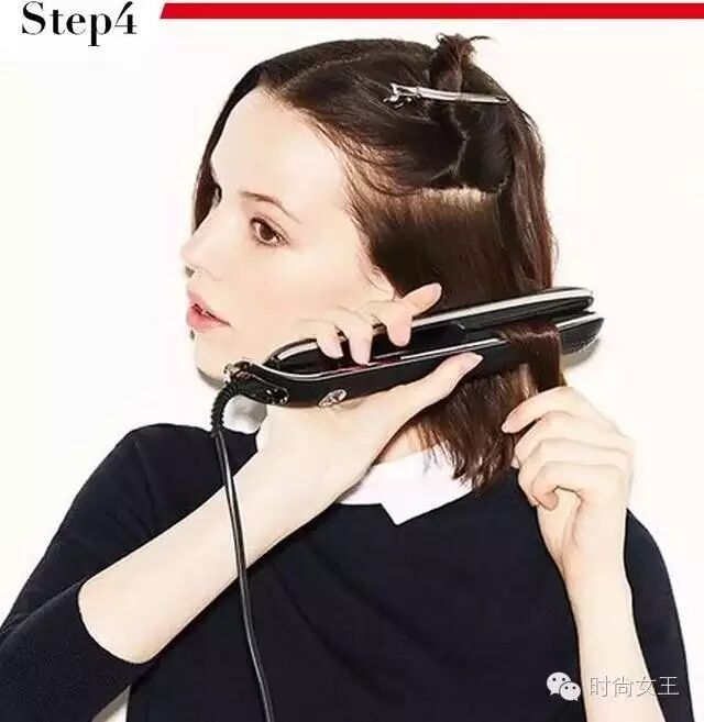 然后用小夹板把头发下半部分分层夹几个小弯,不用夹的太整齐。