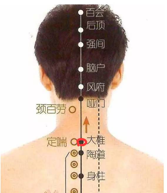 定位:第七颈椎棘突下。主治:清热凉血,消炎解毒,对血燥瘀络不通或血液过于粘稠,而造成面部疾患有卓效。