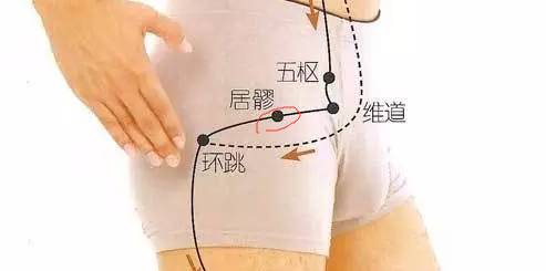 定位:在髋部,当髋前上棘于股骨大转子凸点连线的中点处。主治:对臂部和大腿部深层脂肪代谢有促进作用,可提高肌纤维的活力,同时要治疗腰痛和下肢痿痹。