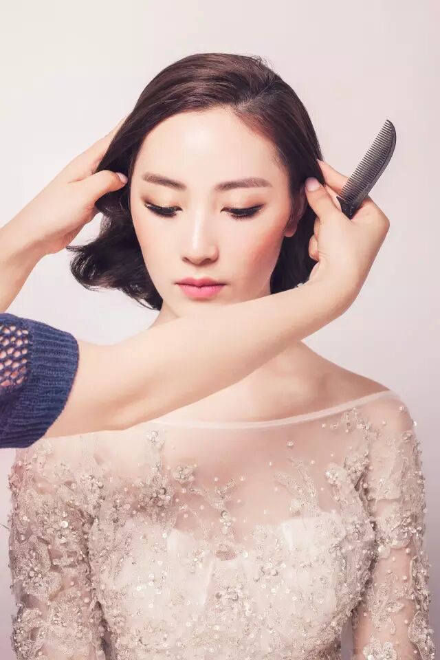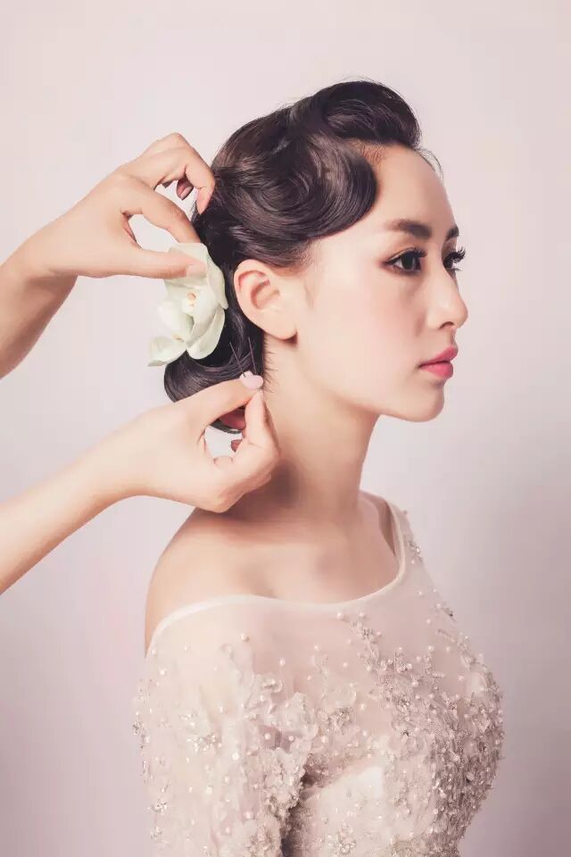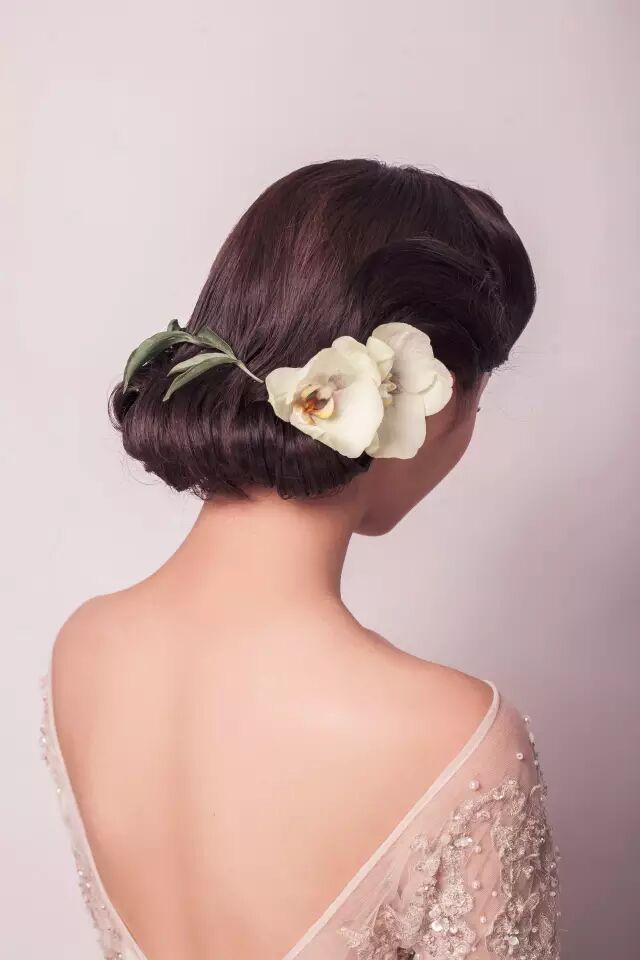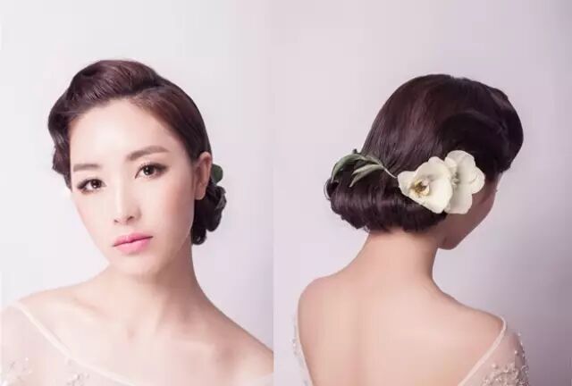 当前越来越多的女孩习惯留中长发,也有很多化妆师遇到中短发的新娘就有些束手无策,其实在造型时只要手法上稍作调整,也能从视觉上达到长发的效果,并且鲜花的融入,也让造型多了一丝清新的感觉,整体呈现出自然而又简约的造型效果。