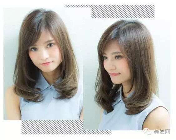 弧度斜刘海搭两边头发能修饰出好看的脸型,再加上咖啡色头发让妹子肤色显白,看起来更有精神,整个人也变更好看了。