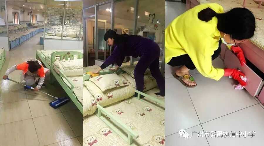 当孩子们都去课室上课,宿舍就安静了。可辅导老师又开始忙碌了起来,宿舍的卫生清理消毒工作是件大事,老师们都是非常认真地对待,用消毒水精心擦拭每一个角落,沉重的拖把经她们的手将地面拖得一尘不染,十分亮堂。而后则是打开宿舍的窗户和门进行通风,保证宿舍的空气质量。这样的工作要持续近一个小时。寒意未去的春天里,辅导老师们的头上都沁出了辛劳的汗水。