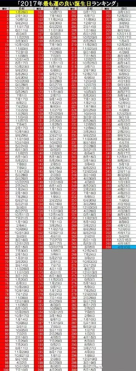 无独有偶,一份《2017最幸运的生日排行榜》在网上疯传,网友查询过自己的生日之后,有兴奋的,也有心塞的。正在孕期的你,看看你的预产期,是否排名靠前?